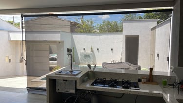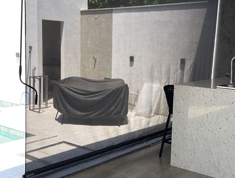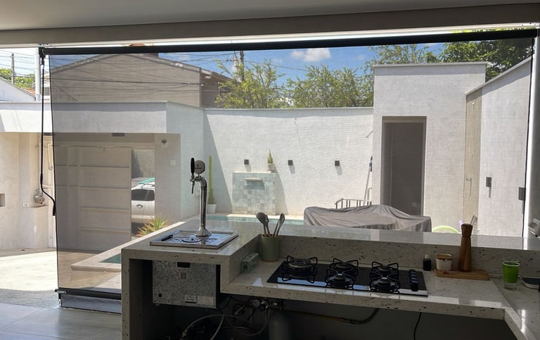 Essa tecnologia é ideal para varandas, áreas gourmet, sacadas, fachadas comerciais e janelas, trazendo conforto térmico e visual sem fechar totalmente o ambiente.
